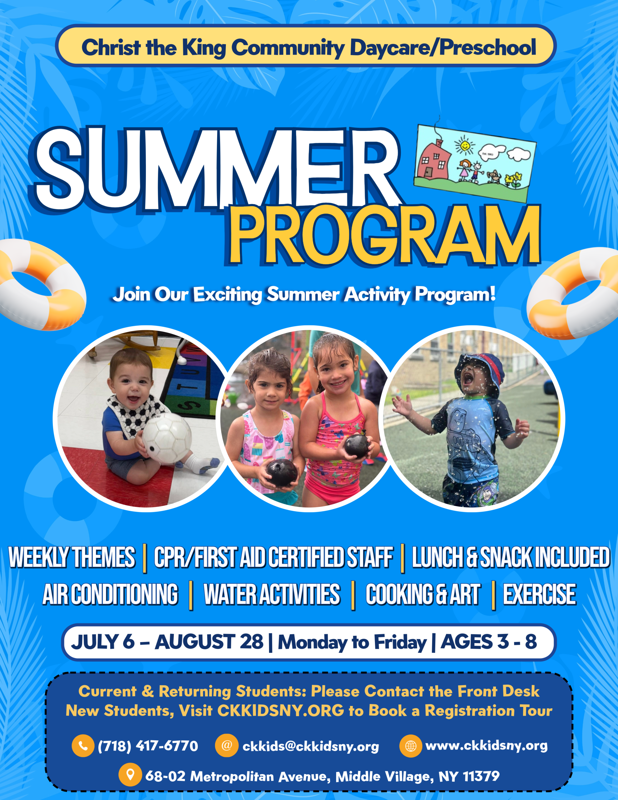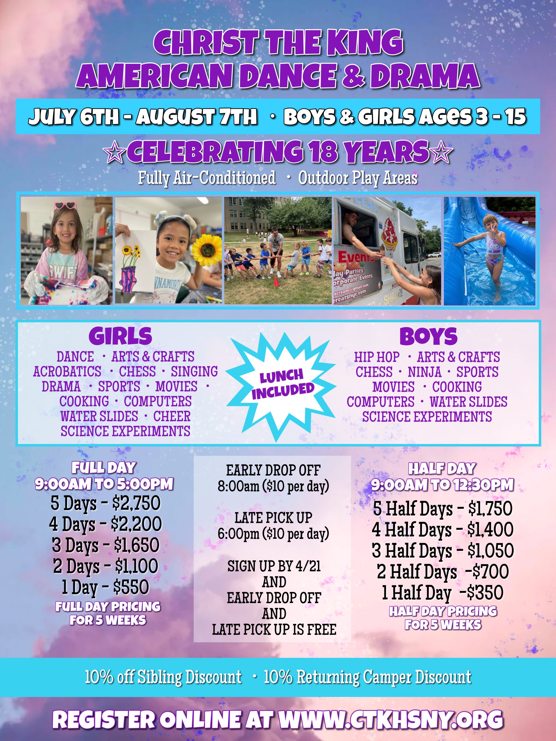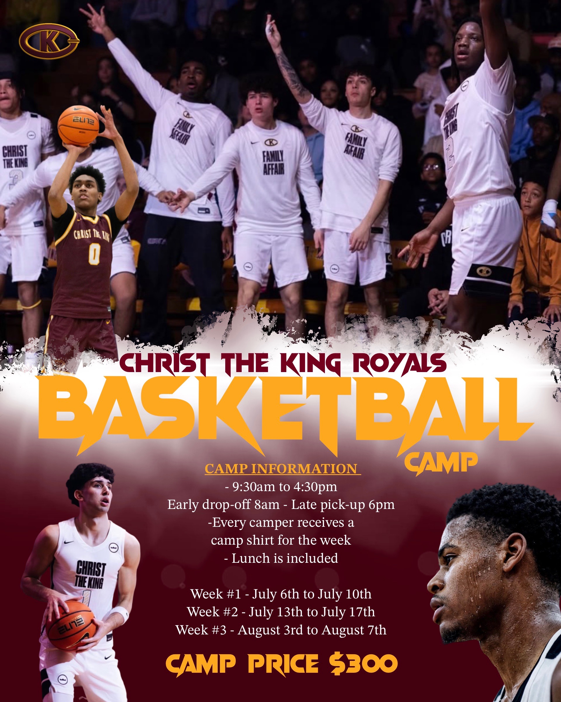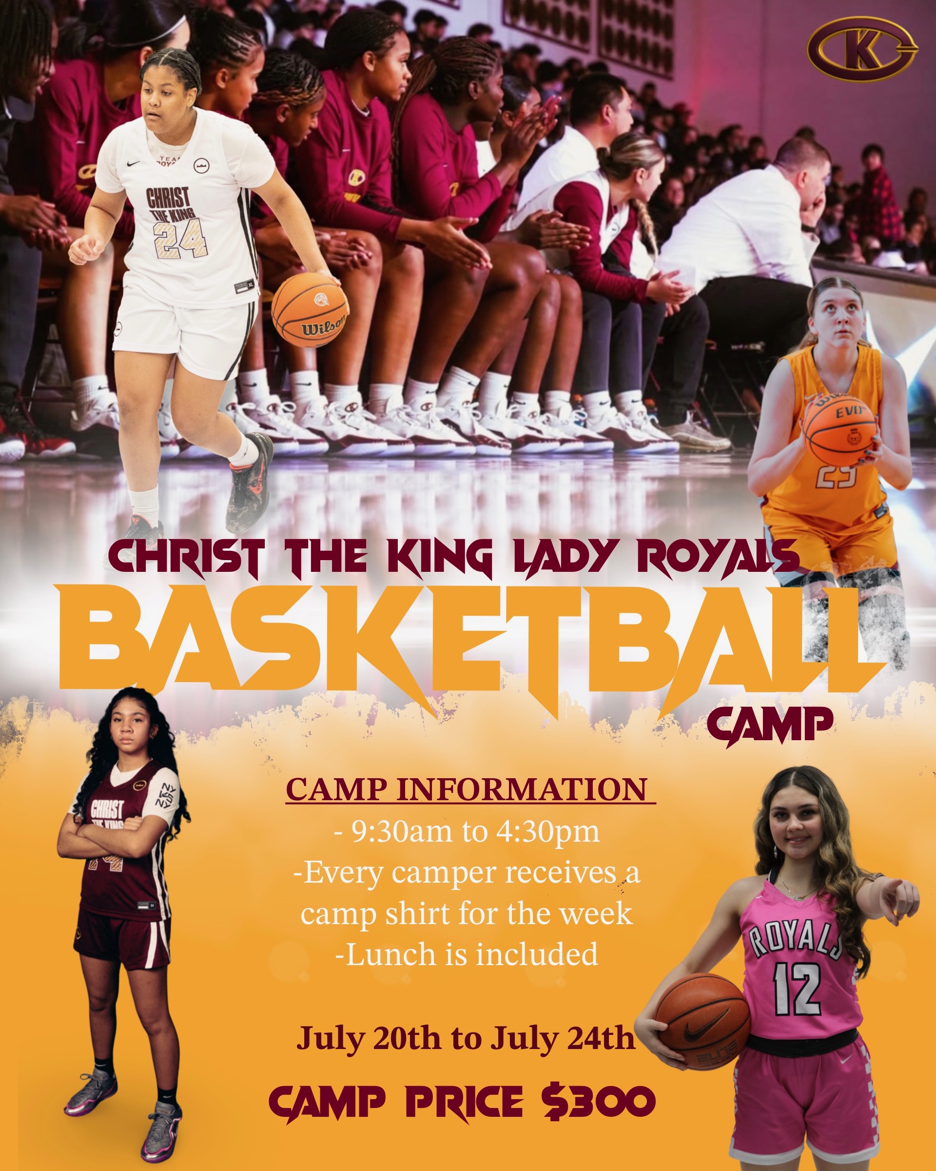 Christ the King Community Daycare/PreschoolSUMMER PROGRAMAges 3 - 8July 6th - August 28th Learn More Here American Dance & Drama SUMMER PROGRAMAges 3 - 15July 6th - August 7th Register Here Royals Basketball CampAges 7 - 13Week 1: July 6th - July 10thWeek 2: July 13th - July 17thWeek 3: August 3rd - August 7th Register Here Lady Royals Volleyball Camp5th - 8th Grade Developmental 9th - 12th Grade Advanced1 Week Only: July 27th - July 31st Register Here Lady Royals Basketball CampAges 7 - 161 Week Only: July 20th - July 24th Register Here